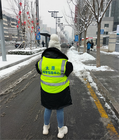 成都眾智合能太原分公司監督員們以雪為令,不等不靠,所有當班監督員徒步在各自負責的網(wǎng)格區域,對積雪形成的安全隱患問(wèn)題進(jìn)行及時(shí)上報,以便處置部門(mén)第一時(shí)間進(jìn)行處置。