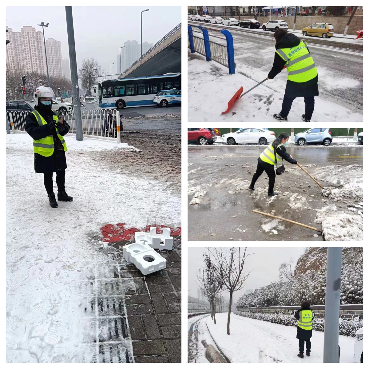 由于雪量較大,為保障市民的出行交通安全,項目部組織休息人員積極投身到清雪除冰工作中,及時(shí)為市民群眾清掃出一條條“安全路”、“溫暖路“,營(yíng)造了干凈整潔的城市環(huán)境,共同維護了城市環(huán)境秩序,保障了城市安全穩定運行。