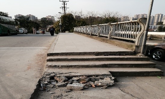 2022年3月4日,市城市綜管服中心街面信息采集員在常規巡查中發(fā)現,龍馬潭區玉帶路一段炭黑廠(chǎng)內菜市場(chǎng)旁公廁橋頭梯步破損。