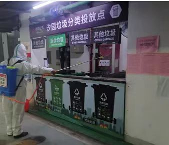 采集員顧磊在防疫巡查工作中,檢查防疫垃圾桶,對不符合要求的現場(chǎng)提醒,并登記上報。